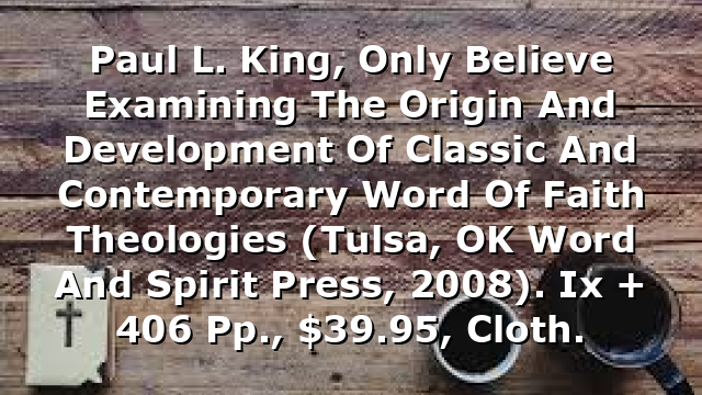 Paul L. King, Only Believe Examining The Origin And Development Of Classic And Contemporary Word Of Faith Theologies (Tulsa, OK Word And Spirit Press, 2008). Ix + 406 Pp., $39.95, Cloth.